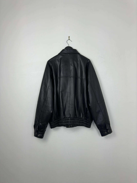 VTG x Real Leather Garments x Biker Style x Black Genuine Leather Jacket - L