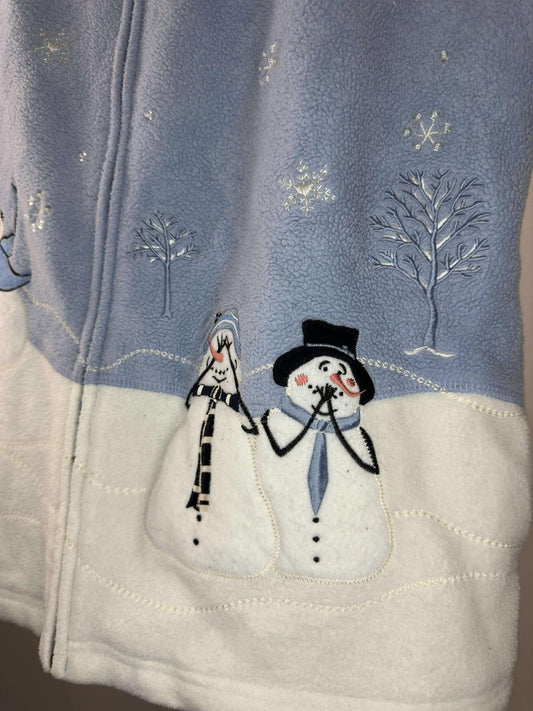Northern Reflections x Snowman Winter Scene Full Zip White Light Blue Fleece Vest - M