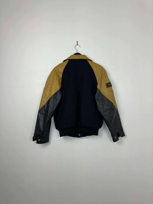 VTG x Club Crest Jackets x Didsbury Fire Department x Black Yellow Varsity Style Leather Jacket -Cut Tag (M)