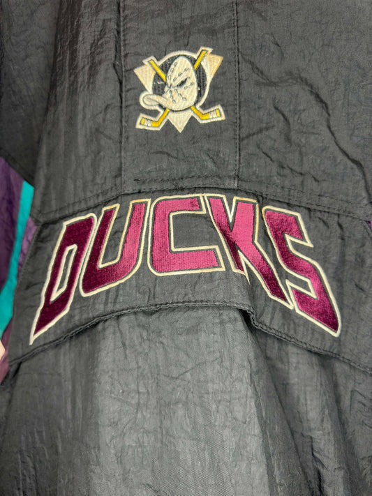 VTG x NHL x Starter x Anaheim Mighty Ducks x Black Quarter Zip Heavy Insulated Jacket - XL (See Measurements)