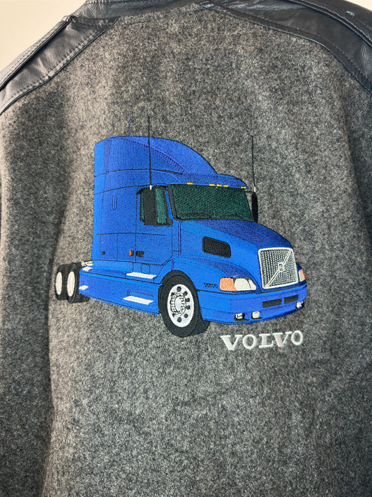 VTG x VOLVO Trucking x Alberta Heavy Truck Center x Black Brown Leather Zip Up Jacket - XXL