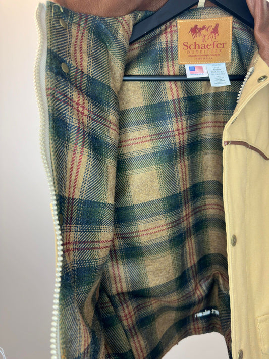VTG x Schaefer x Leather Collar x Blanket Lined x Tan Western Outerwear Vest - L