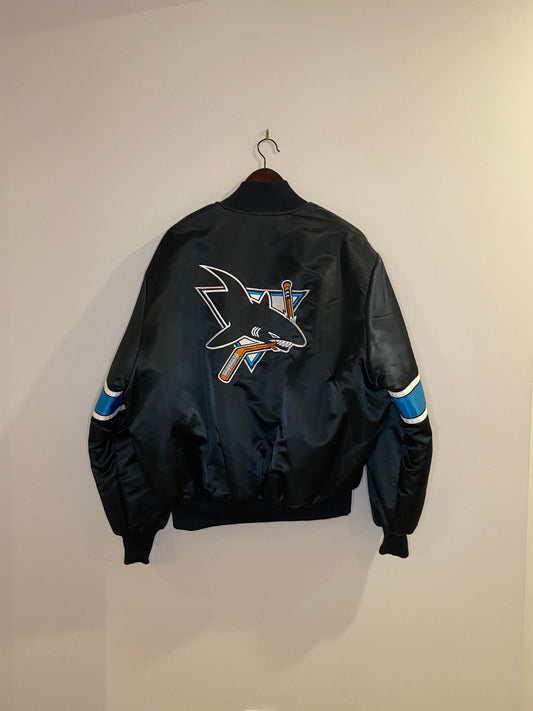 VTG x NHL x San Jose SHARKS Button-Up Satin Bomber Jacket - XL