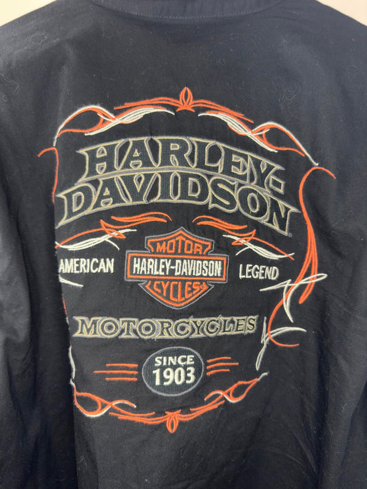Harley Davidson x Black Embroidery Long Sleeve Button Up - M