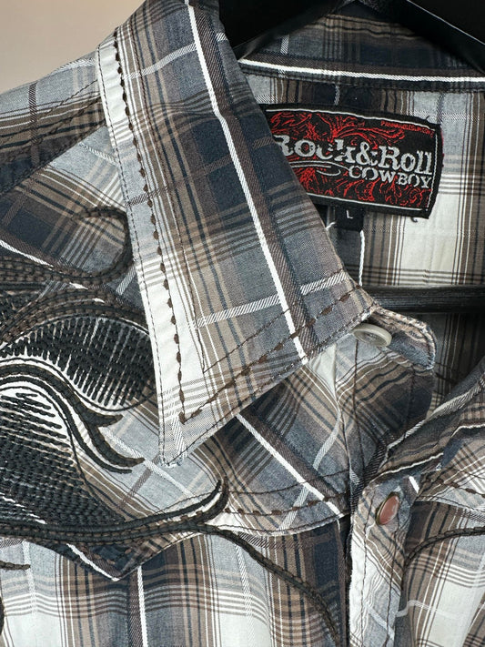 Rock & Roll Cowboy x Brown checkered Long Sleeve Western Button Up - L