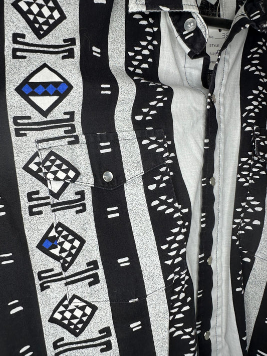 VTG x Panhandle Slim x Tribal Aztec Print x Black White Patterned Western Long Sleeve Button Up - 16 1/2 (L)