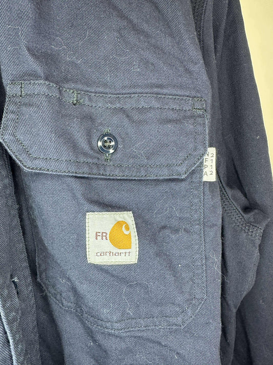 VTG x Carhartt x Navy Blue Long Sleeve Button Up - L (Tall)