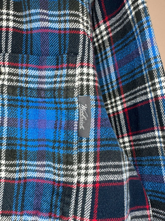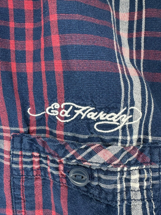 Y2K x Ed Hardy x Blue Red Checkered Pattern Long Sleeve Button Up - Women's S