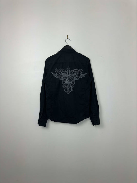 Y2K x Urban Heritage x White Graphic Black Long Sleeve Button Up - M