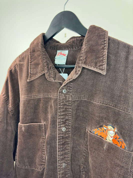 VTG x Disney x Winnie the Pooh x Tigger Embroidery x Brown Long Sleeve Button Up - XXL