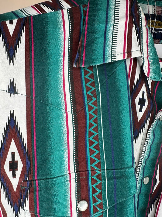 VTG x Panhandle Slim x Tribal Print x Green Maroon Patterned Western Long Sleeve Button Up - L