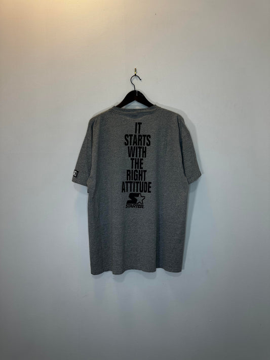 VTG x STARTER x CALGARY FLAMES x NHL x Grey Flames Hockey "It Starts with the Right Attitude" Single Stitched Graphic Tee - XL