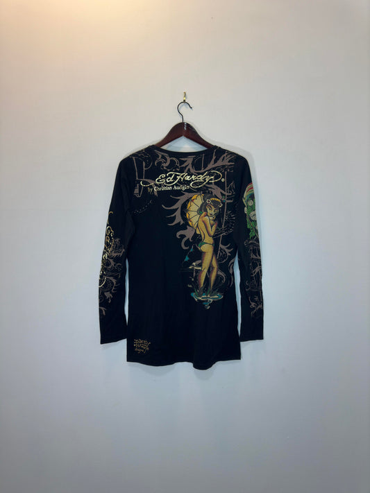 VTG x Y2K Style x Christian Audigier x Ed Hardy Japanese Suburban Style Graphic Long Sleeve Tee - Women's L