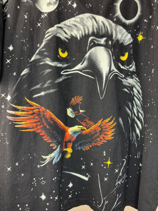 VTG x Diego's American Design x Big Eagle Print x Black Graphic All Over Print Tee - XL