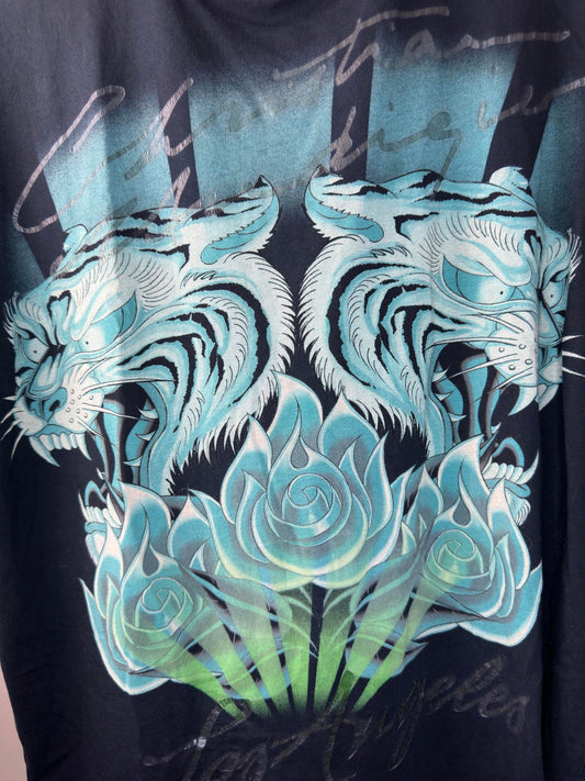 Y2K x Christian Audigier x Black Big Print Graphic Tee - Wmns XXL