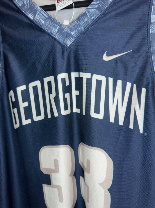 VTG x NIKE x NCAA x Georgetown Hoyas x Patrick Ewing & Alonzo Mourning Number x Navy Blue Basketball Jersey - L